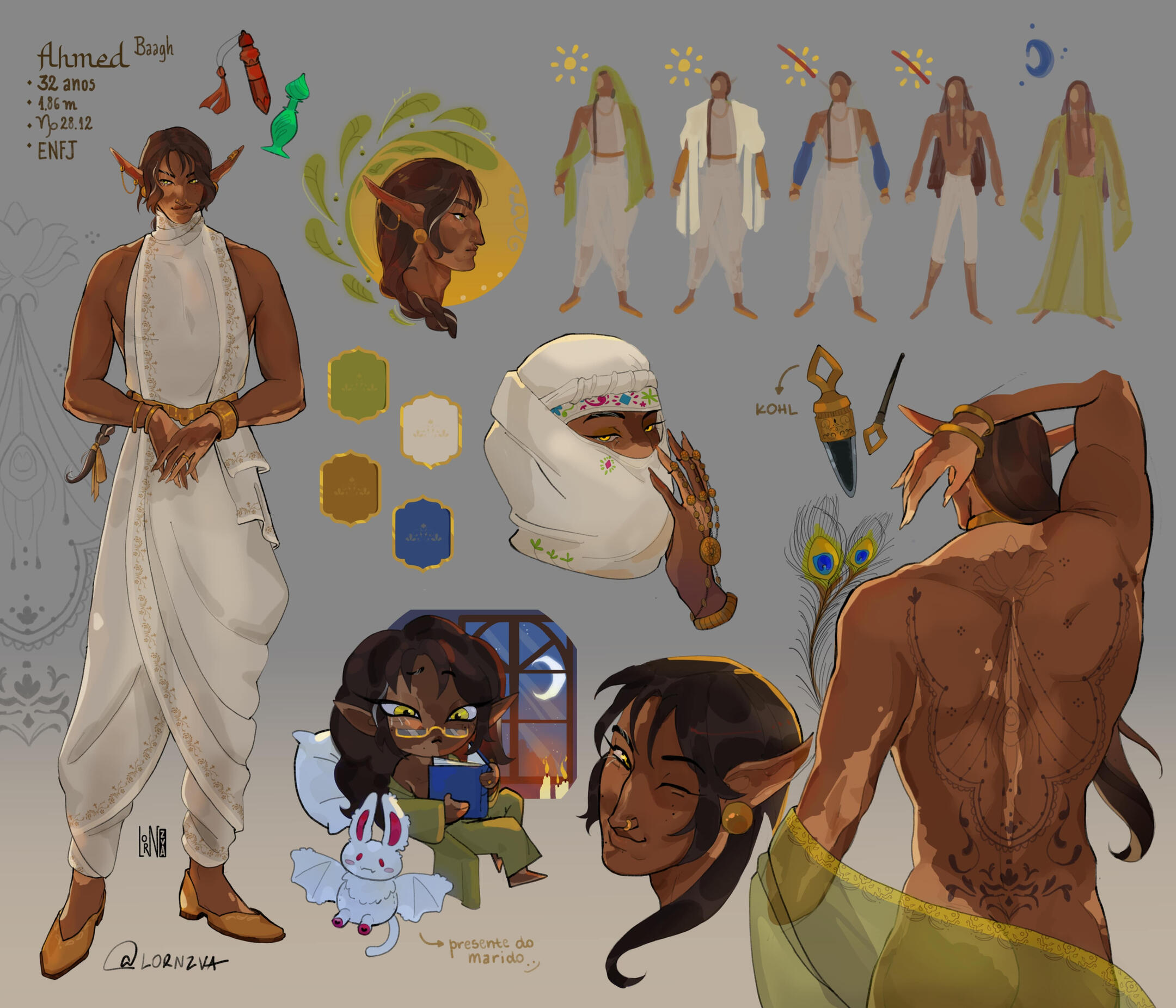 • CHIBI (R$15): Ilustração de corpo inteiro do seu personagem em estilo chibi.• REFERÊNCIA COMPLETA (R$400): Inclui busto completo de perfil decorado, 1 personagem completo corpo inteiro na pose escolhida, 2 expressões de escolha completas, uma característica específica de escolha em detalhe (grampo de cabelo, broche, tatuagem, peça de armadura, etc.), paletas de cores ou padrões, 1 chibi completo e 5 RASCUNHOS coloridos de opções de roupa.